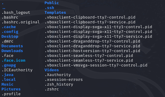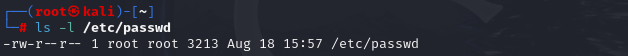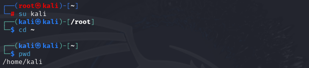 보면 kali 계정의 홈 디렉토리는 /home/kali 인 것을 확인할 수 있다.