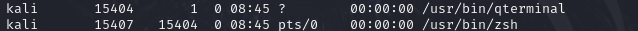 zsh은 ppid가 15404인 프로세스가 실행함. 여기서 15404는 qterminal의 pid.