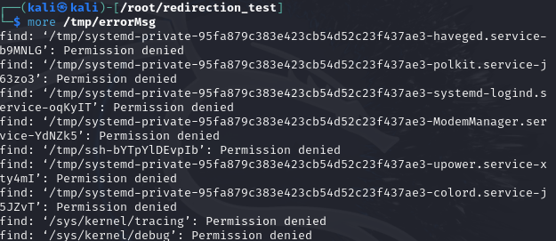하지만 에러메세지를 임시파일에 리다이렉션하면? == " 2> /tmp/errorMsg "