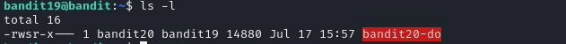 여기서 보면 파일 소유자는 bandit20이고 rws SETUID가 적용되어 있는 것을 확인했다.