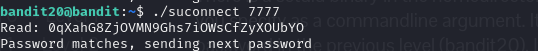 bandit20만 들어갈 수 있는 홈디렉토리에 접근을 시도했더니 성공!