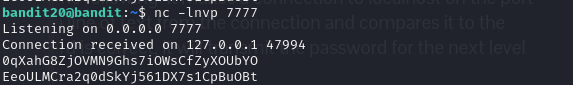 쉘을 실행시킬때 bandit20의 권한으로 실행해서 bandit20처럼 명령어 쓸 수 있다!